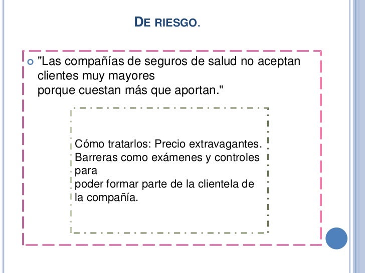 - "Las compañías de seguros de salud no aceptan clientes muy mayoresporque cuestan más que aportan."